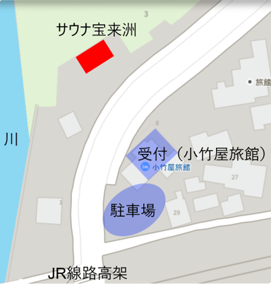 ・サウナの正面にある小竹屋旅館で宿泊可能