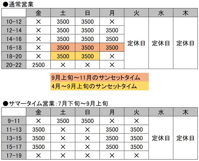 ・2025年7月28日~9月上旬の営業時間がサマータイムとなります