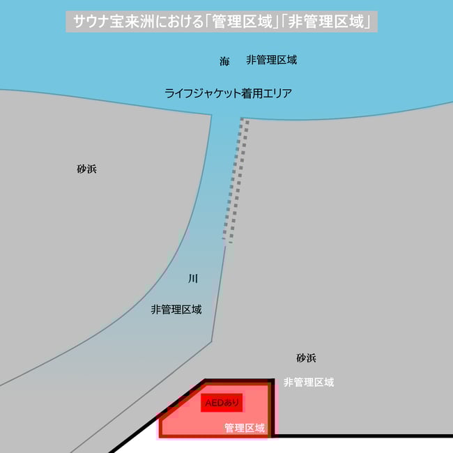 ・管理区域:安全にサウナを楽しめるよう施設が管理しているエリアです。通常利用のサウナで事故があれば原則施設が責任を負います。
