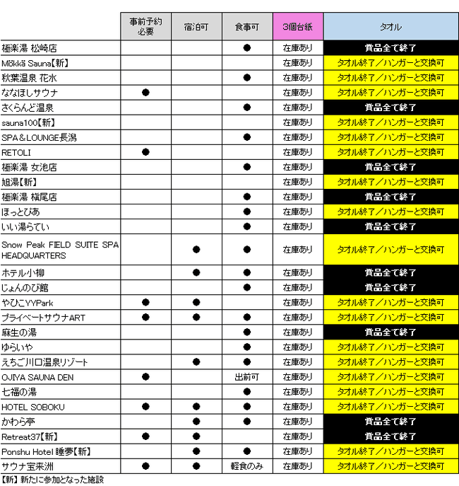 A.その施設の在庫が無くなった場合も、他の対象施設に在庫があればもらうことができます。その際、サウナやお風呂を利用しなくても、賞品の交換のみ応じてもらえます。